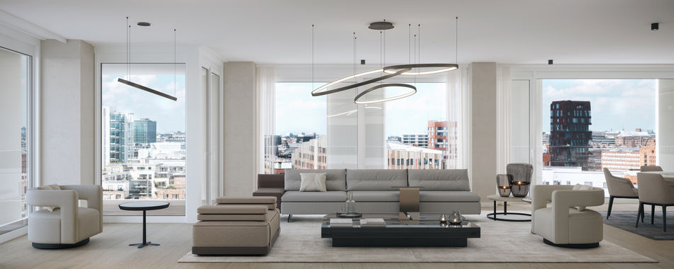 Alle Apartments, von der Ein-Zimmer-Wohnung bis zum großzügigem Penthouse, verfügen über private, nicht einsehbare Loggien, die damit eine ideale Ergänzung zur gemeinschaftlichen Dachterrasse bieten. So haben die Bewohnerinnen und Bewohner stets die Wahl, ob sie ihren Sundowner in geselliger Runde oder doch lieber für sich unter dem Hamburger Himmel genießen möchten.